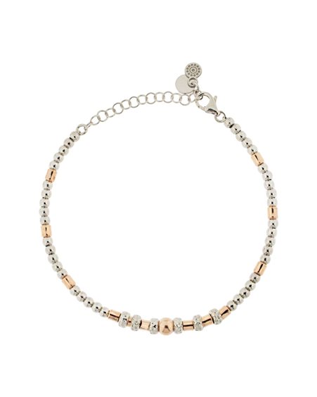 Bracciale Palline e Tubetti ag925 rodio e rosè cm 20