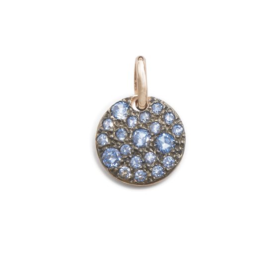 Pendente tondo in argento 925 rosè con pavè di zirconi color tanzanite Diametro 12 mm Maglia apribile