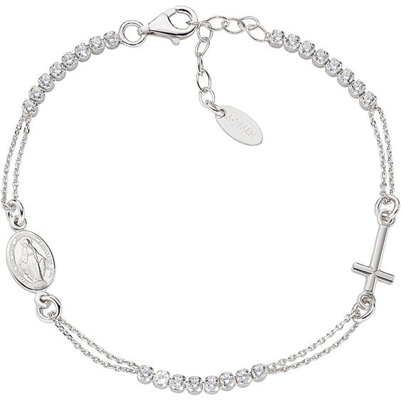 Bracciale da donna di Amen della collezione Croci. Gioiello in argento 925 con placcatura in rodio e zirconi bianchi. Lunghezza: 16 + 3 cm.