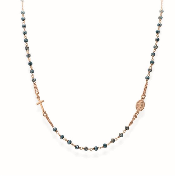 Rosario girocollo e cristalli cangianti petrolio (Lung. 50+2cm)