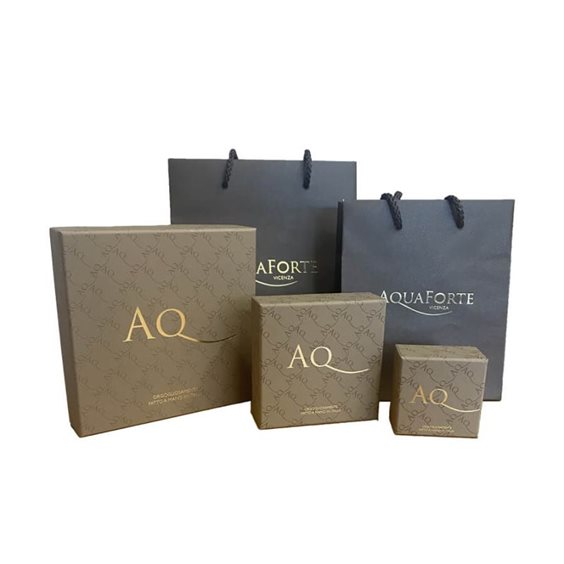 Realizzata interamente a mano, questa creazione Aquaforte nasce dalla passione e dall'esperienza di maestri orafi artigiani. In ogni particolare di questo gioiello in argento 925‰ si riconoscono l'origine italiana e lo stile internazionale. La placcatura in oro giallo 23 carati, rivestita da uno speciale trattamento, è rigorosamente eseguita senza alcun rilascio di nichel e cadmio.