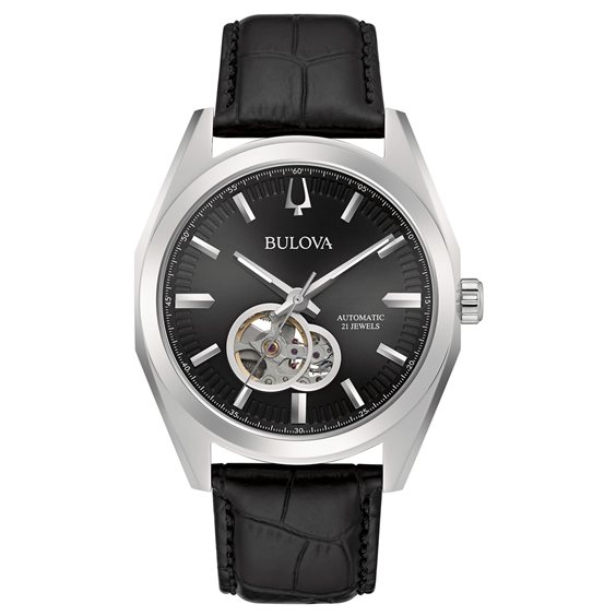 Orologio uomo solo tempo modello Surveyor Mecha. Cassa in acciaio lucido con fondello serrato a vite vista movimento. Movimento automatico 21 rubini con riserva di carica 40 ore. Vetro minerale piano. Quadrante nero con oblò vista movimento ad ore 6, indici e lancette lucide e luminescenti. Cinturino in pelle stampa alligatore nero opaco, chiusura deployante con pulsanti . Scatola libretto istruzioni e garanzia 2+1 anni originali.