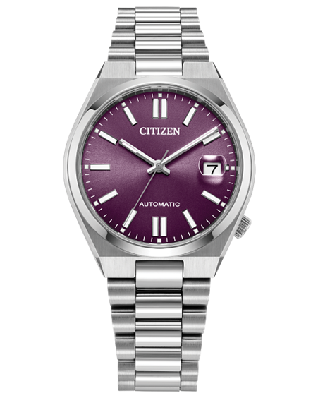 Orologio Automatico solo tempo Unisex Citizen modello Tsuyosa 37. Cassa acciaio lucido e satinato fondo a vite con vista movimento, corona posizionata a ore 4. Movimento Meccanico Automatico Citizen 21 rubini , 21.600 oscillazioni all'ora , riserva di carica 40 ore. Vetro Zaffiro antigraffio con lente sulla data. Quadrante colore viola , indici e lancette luminescenti , data ore 3. Bracciale acciaio regolabile , chiusura deployante con pulsanti. Impermeabile 5 atm. Scatola e Garanzia 5 anni original