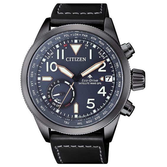Orologio Eco-Drive (a carica luce infinita), con riserva di carica di 1.5 nni (5 anni in modalita' risparmio energetico). Indicatore livello di carica sul quadrante. Inidcatore generazione energia. Diverse funzioni: Satellite System con ricezione segnale orario dai satelliti (tolleranza 1 sec. ogni 10 milioni di anni). Funzioni di GPS. World timer con orario di 40 citta' del mondo. Realizzato in cassa di acciaio, cinturino in pelle e vetro zaffiro con trattamento antiriflesso. WR 20 bar.