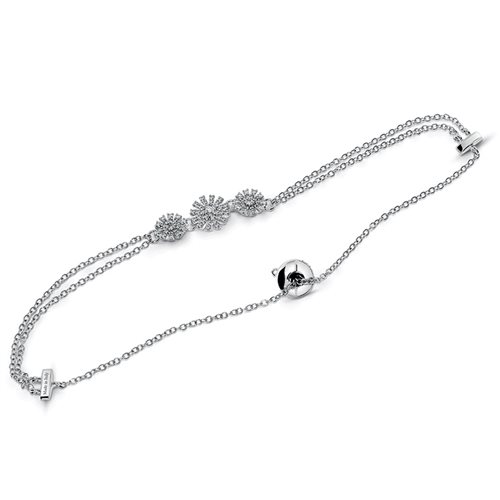 La collezione Margherita, ispirata all'anello che Enrico Grassi Damiani nei primi del '900 dedicò alla Regina Margherita, è protagonista assoluta di un'espressione contemporanea in cui gli elementi floreali si trasformano in oro, creando una giocosa armonia tra forme, volumi e altezze. Il fascino incantevole dei diamanti bianchi e brown e di ametiste e quarzi citrini assume le sembianze di avvolgenti corolle presentate singolarmente o combinate in dimensioni diverse che richiamano le radici dell'azienda.Bracciale DAMIANI Margherita 20072995 Oro bianco 18 Kt 5,0 gr Diamanti round 0.36 Ct. Lunghezza da 13,5 a 22 cm