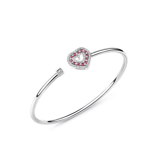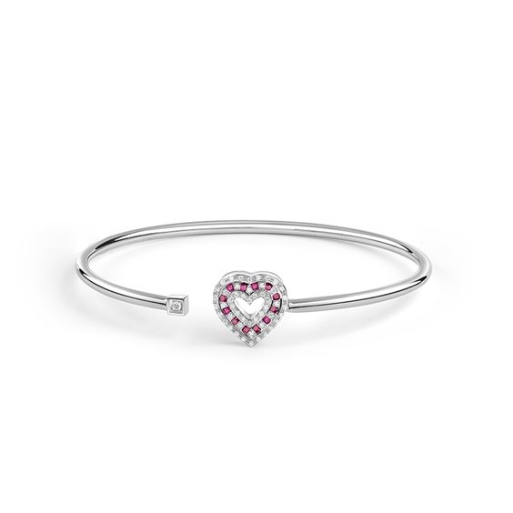 BRACCIALE RIGIDO CON CUORE INTARSIATO DI DIAMANTI E RUBINI . DIAMANTI: KT.0,10 COLORE: G/H RUBBINO: KT. 0,014
