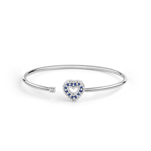 Damiani Belle Epoque è la collezione che si ispira all'eleganza dell'epoca parigina e alla femminilità, in cui i contrasti tra la brillantezza dei diamanti e il profondo colore delle pietre preziose come zaffiri, rubini e smeraldi danno vita a gioielli sorprendenti, raffinati e sofisticati. Il design della collezione Damiani Belle Epoque è moderatamente retrò reinterpretato in una chiave moderna, uno stile ever green, perfetto per la donna che ama il passato ma vive il presente, adora essere ammirata e desiderata, una donna che sfoggia fiera la sua femminilità Bracciale in oro bianco con motivo cuore di brillanti colore g/h ct 0.10 e zaffiri ct 0.14. Misura cm 16,5