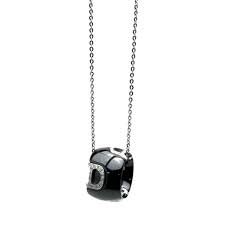Collana Damiani D-Icon in oro bianco con pendente in ceramica nera con diamanti taglio brillante. Brillanti Ct 0,14. Lunghezza collana 50cm regolabile a 40cm.