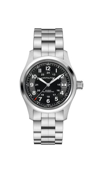 Nel pianificare una spedizione, occorre un'attrezzatura affidabile, resistente, funzionale e compatta. Con i suoi 38 mm, questo orologio punta in alto in termini di funzioni di ispirazione militare. Look audace, cassa e cinturino robusti e resistenti e un movimento che non ti pianterà in asso. Con 80 ore di riserva di carica garantite dall'esclusivo calibro automatico H-10, il Khaki Field Auto sarà sempre al tuo fianco.