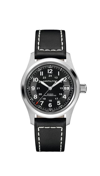 Nel pianificare una spedizione, occorre un'attrezzatura affidabile, resistente, funzionale e compatta. Con i suoi 38 mm, questo orologio punta in alto in termini di funzioni di ispirazione militare. Look audace, cassa e cinturino robusti e resistenti e un movimento che non ti pianterà in asso. Con 80 ore di riserva di carica garantite dall'esclusivo calibro automatico H-10, il Khaki Field Auto sarà sempre al tuo fianco.