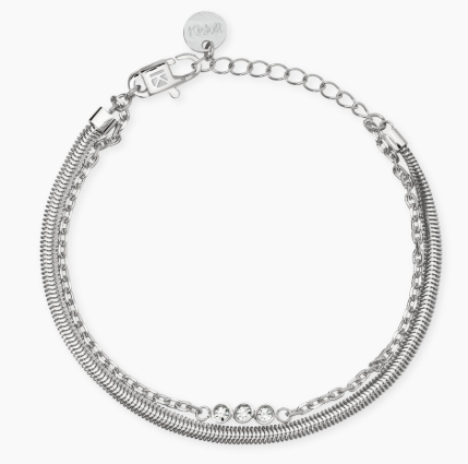 Bracciale in acciaio 316L, lunghezza regolabile da 16 a 19 cm, con catene forzatina diamantata e snake, cristalli. Dimensioni: forzatina 2 mm, snake 3 mm, pietre Ø 2.5 mm
