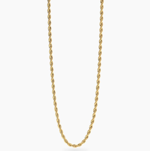 Collana in acciaio 316L e PVD giallo, lunghezza 50 cm, con catena corda. Dimensioni: larghezza catena Ø 2.3 mm