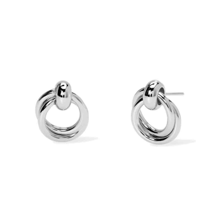 Orecchini in acciaio 316L, lunghezza totale orecchino 1.7 cm, con pendente doppio cerchio. Dimensioni: larghezza orecchino 13.5 mm