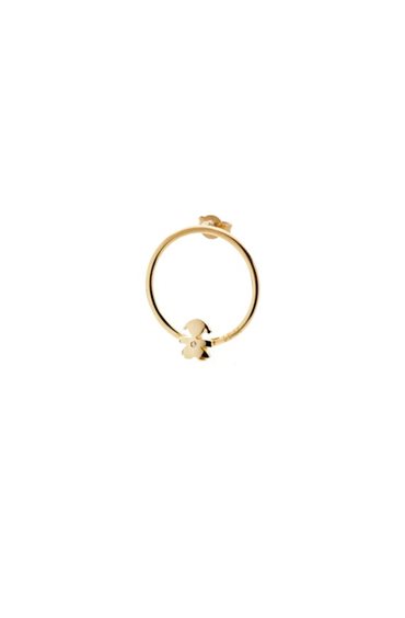 La raffinatezza delle piccole cose. Le sagome Bimbo e Bimba in una versione delicata e contemporanea. Mono Orecchino pendente Bimba in Oro Giallo 9 Kt con diamante.