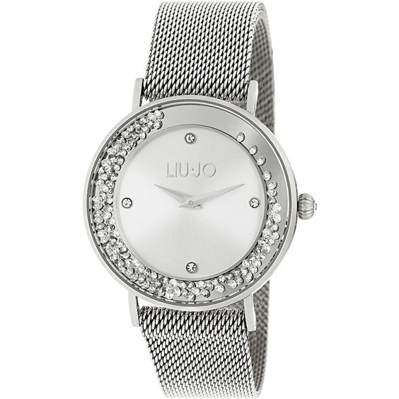 Orologio solo tempo da donna di liu jo della collezione dancing slim. Orologio con cassa in acciaio di forma rotonda del diametro di 36mm, display analogico e cinturino in acciaio. La cassa è caratterizzata da dei cristalli trasparenti mobili che si muovono al movimento del polso. Cinturino in maglia milano con chiusura a calamita per una facile regolazione. L'accessorio è un solo tempo con movimento al quarzo e resistente all'acqua fino a 3atm. Larghezza ansa 18 mm. Orologio con resistenza all'acqua di 3 atm e movimento miyota cal. Vj20.
