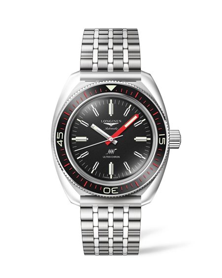 L'orologio dalla precisione estrema Ispirandosi al Longines Ultra-Chron Diver originale del 1968, questo modello con calibro ad alta frequenza è una reinterpretazione che celebra l’approccio pionieristico di Longines nel mondo del cronometraggio sportivo, che da sempre distingue la Maison. Il nuovo Longines Ultra-Chron saprà conquistare sia gli appassionati di orologi vintage che gli amanti dell’alta tecnologia. Il modello esibisce un bracciale in acciaio ed è consegnato all’interno di uno speciale cofanetto contenente un cinturino NATO nero realizzato a partire da materiali riciclati.