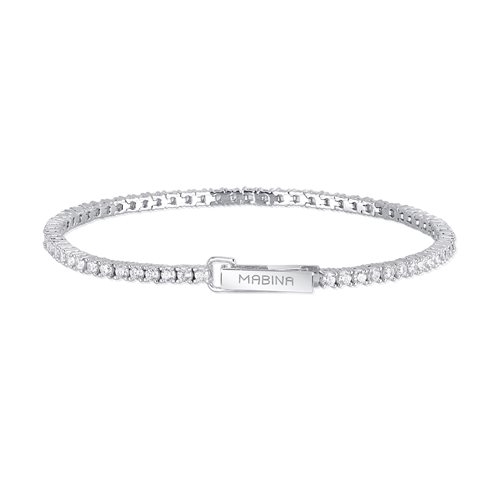Bracciale tennis in argento 925 rodiato e zirconi. Chiusura pinza a molla. Misura cm 16.
