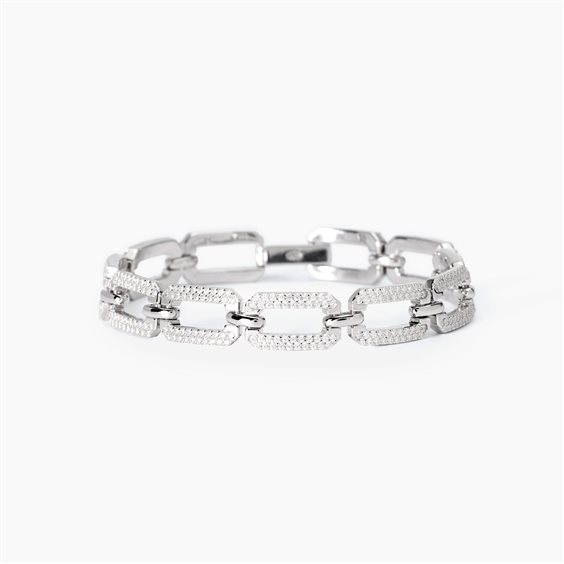 Bracciale in argento 925/ººº rodiato con maglie ottagonali 15x8.8 mm e zirconi Ø 1.25 mm, lunghezza 17 cm