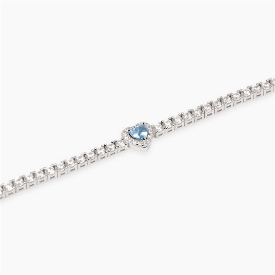 Bracciale tennis in argento 925/°°° rodiato con acquamarina sintetica centrale 4x4 mm taglio cuore e zirconi Ø 2 e 1 mm