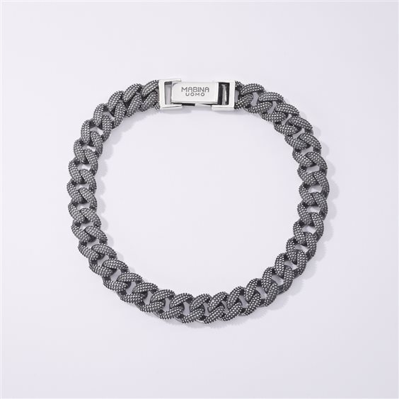 Bracciale uomo , argento 925% brunito , catena groumette borchiata mm 8 , chiusura a pinza con molla , lunghezza cm 20. Scatola e garanzia originale.