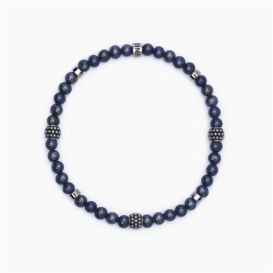 Bracciale in argento 925/°°° rodiato elastico con perle coltivate nere Ø 4.5/5 mm, lunghezza 19 cm.