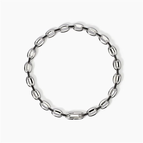Bracciale in argento 925 rodiato con zirconi neri. Maglia marina con zirconi neri sulle giunzioni. Misura bracciale cm 19.