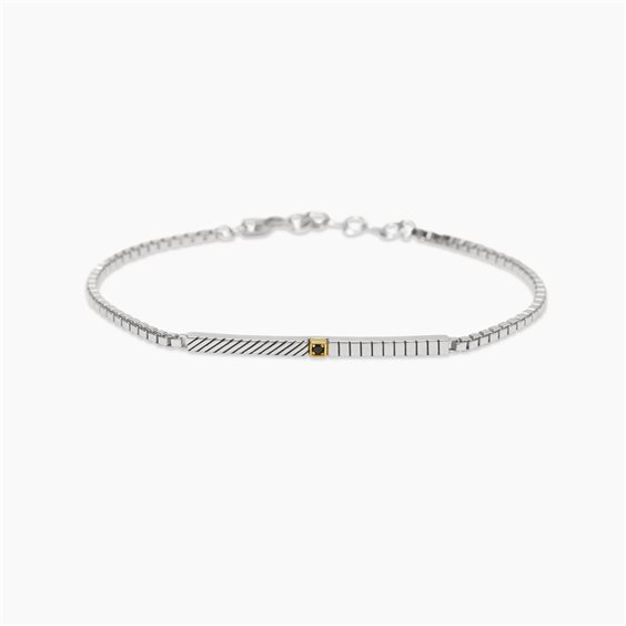Bracciale in argento925, catena maglia veneta. Piastra con inserto placcato oro giallo 18K e zircone nero diametro 1,75mm. Lunghezza regolabile da cm 19 a cm 21.
