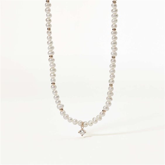 Collana donna , argento 925 rosato , perle bianche coltivate mm 3,5/4 , zircone incastonato con griffe , lunghezza cm 40 regolabile fino a cm 36 , chiusura a moschettone. Scatola e garanzia originali.