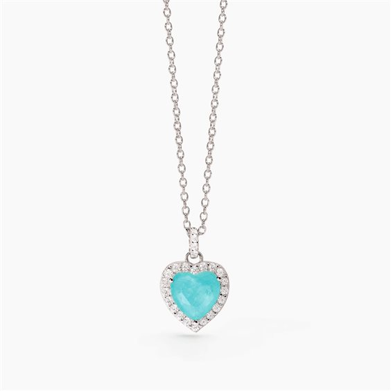 Girocollo regolabile da donna in argento rodiato con catena rolò e pendente a forma di cuore in glass azzurro, cristallo di rocca e zirconi. • Dimensione pendente: 12 x 12,5 • Diametro degli zirconi: 1,5 mm • Misura regolabile, lunghezza da 40 a 45 cm • Materiale: Argento 925, Glass azzurro, Cristallo di rocca