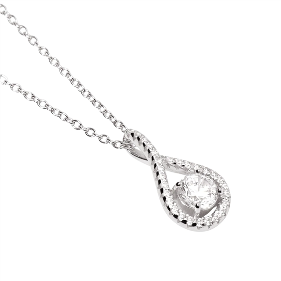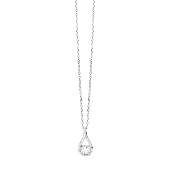 Girocollo in argento 925/°°° rodiato con catena rolò 1.2 mm e pendente 8.5x16.5 mm goccia con zirconi Ø 5 e 1.5 mm, lunghezza regolabile da 40 a 45 cm