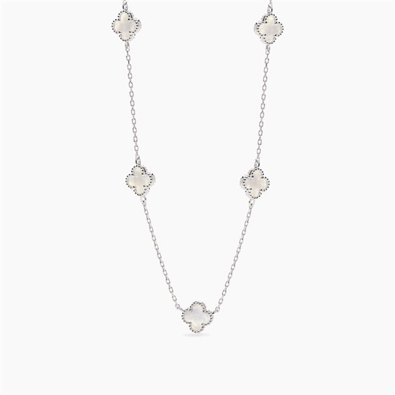 Girocollo in argento925 con madreperla e zirconi. Catena regolabile da cm 40 a cm 45.