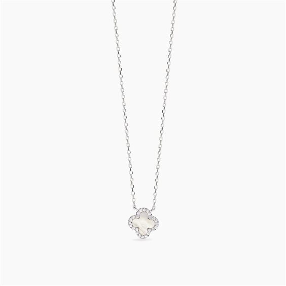 Girocollo in argento925 con madreperla e zirconi. Catena regolabile da cm 39 a cm 43.