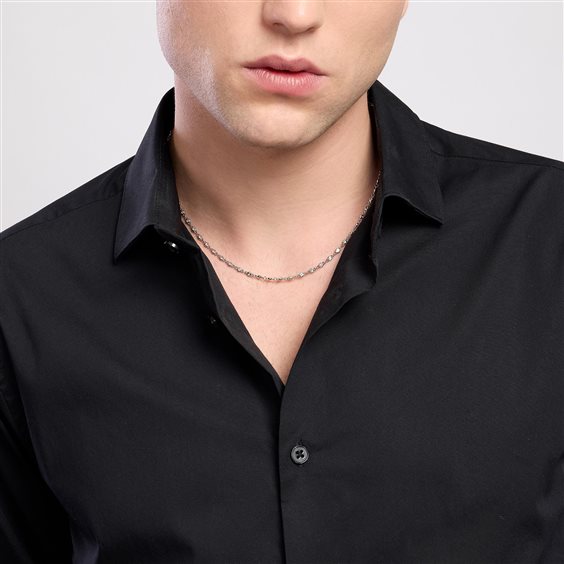 Collana da uomo in argento rodiato con zirconi bianchi. • Diametro zirconi: 1,75 mm • Misura regolabile, lunghezza da 43 a 48 cm • Chiusura con moschettone • Materiale: Argento 925, Zirconi