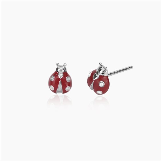 Orecchini a lobo in argento a forma di coccinelle smaltate con zirconi. • Incastonatura degli zirconi a castone • Dimensione delle coccinelle: 6,3 x 7 mm • Diametro degli zirconi: 1,5 mm • Misura unica • Materiale: Argento 925, Smalto, Zirconi