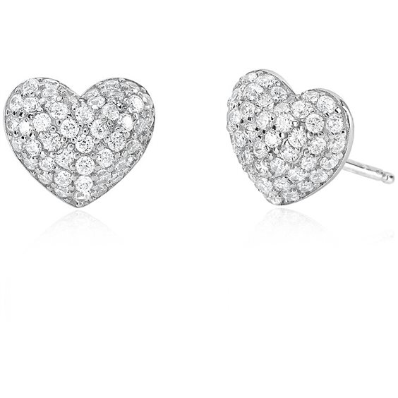 Orecchini argento 925/°°° rodiato con cuore 10.10x8.70 mm e zirconi bianchi Ø 1.25 mm