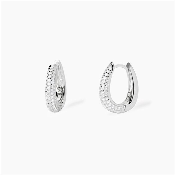 Orecchini in argento 925/°°° rodiato con zirconi Ø 1.25 mm, dimensioni interne 9x12 mm, esterne 12x17 mm