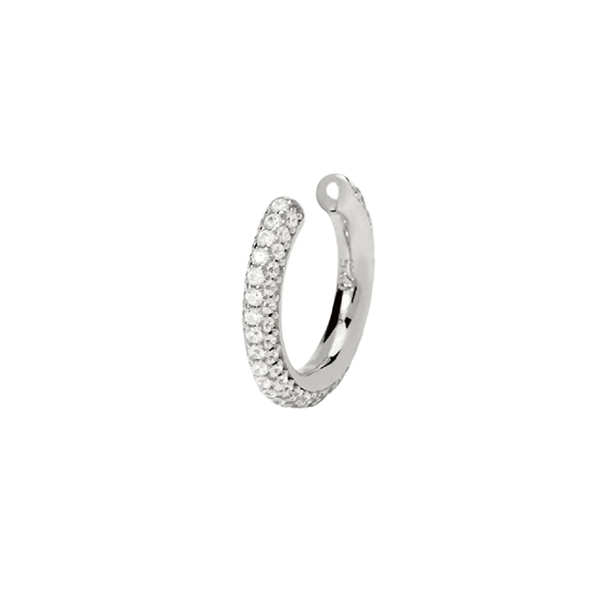 Orecchino ear cuff in argento 925/°°° rodiato con zirconi Ø 1.25 mm, Ø esterno 15 mm, interno 10 mm