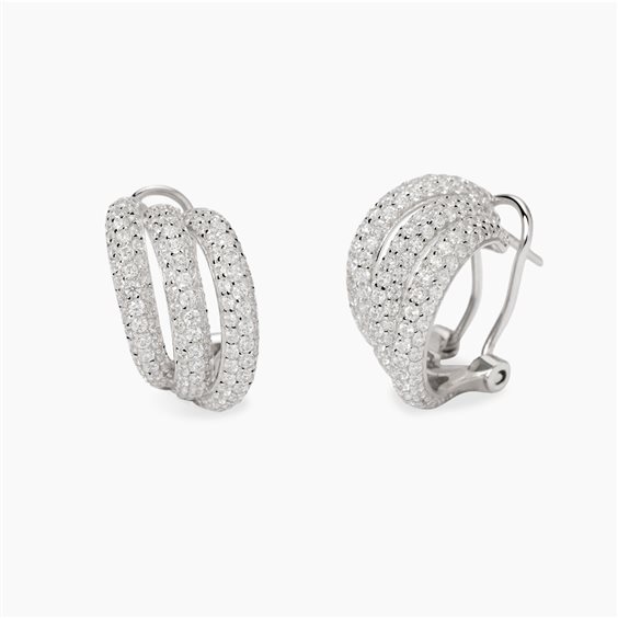 Orecchini in argento925 leggermente pendenti (cm 1,5) con zirconi. Ago e clip a molla.
