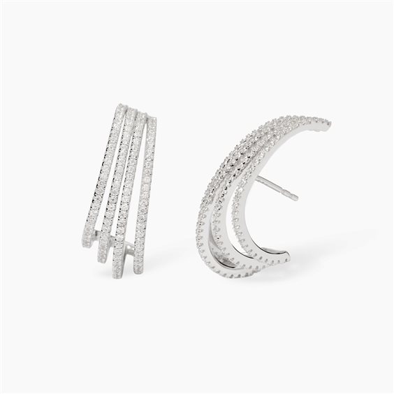 Orecchini in argento rodiato e zirconi. • Diametro zirconi: 1,5 mm • Lunghezza totale dell'orecchino: 2,7 cm • Materiale: Argento 925, Zirconi