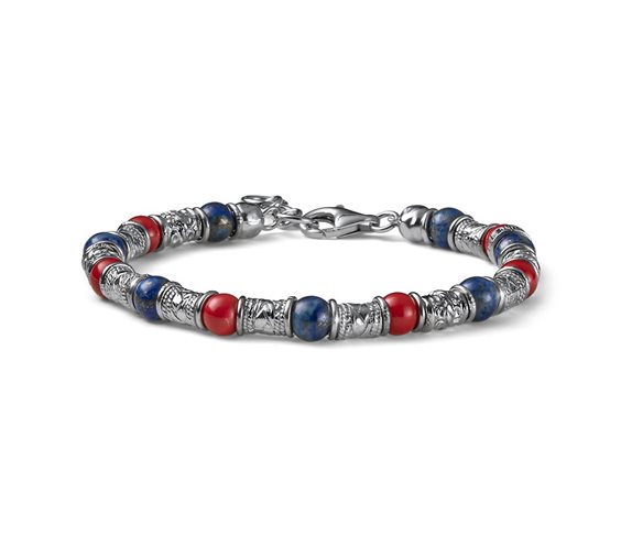 Art. G4556 • Bracciale uomo cm.19+3 in Argento 925‰ • Lapis e corallo ø 6