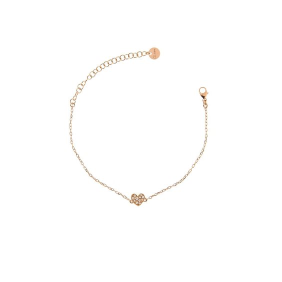 Braccialetto catena e soggetto centrale cuore con zirconi. Collezione Stardust Classic Finitura disponibile: oro rosa o oro giallo 18Kt e zirconi Lunghezza: 14 cm + estensione 5 cm Nichel free