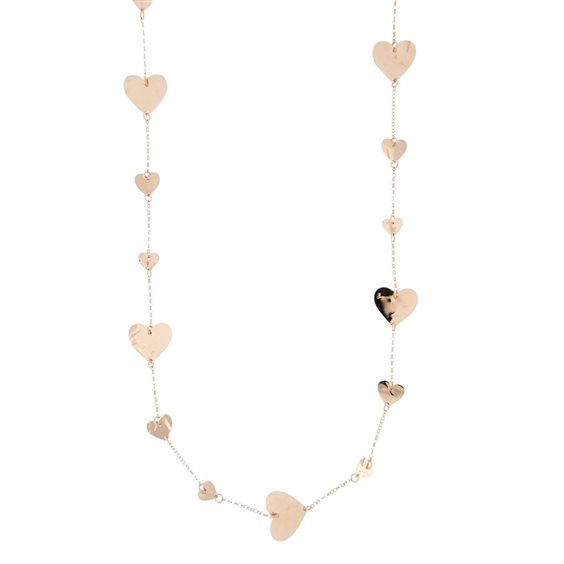 Collana catenella e inserti con soggetti lastra martellata. Soggetto: Cuore Materiale: Argento 925 Finitura disponibile: Placcatura rosa 18kt Lunghezza collana: 100 cm