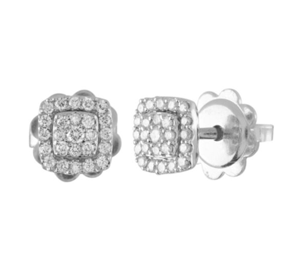 Orecchini con quadrato mini della collezione Bagliori in oro bianco con diamanti a taglio rotondo di caratura 0.18 di colore GH.
