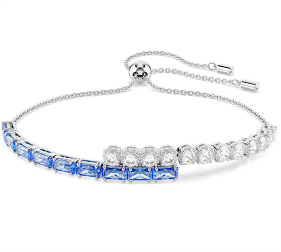 Delicato ma vivace, questo bracciale Matrix Tennis è il modo perfetto per portare un tocco di gioia nel tuo stile. Il design placcato rodio presenta Swarovski Zirconia trasparenti e blu in un vivace mix di tagli Round e Baguette, mentre la chiusura scorrevole consente una vestibilità confortevole. Questo bracciale può essere indossato con le creazioni Matrix Tennis coordinate per esaltare il colore e la luce di qualsiasi tuo outfit. Articolo nr.: 5732266 Collezione: Matrix Lunghezza (minima - massima): 16 - 24 cm Ampiezza: 0.7 cm Materiale: Cristalli, Placcatura rodio, Zirconia Colore: Blu Tipo di fermaglio: Sfera scorrevole