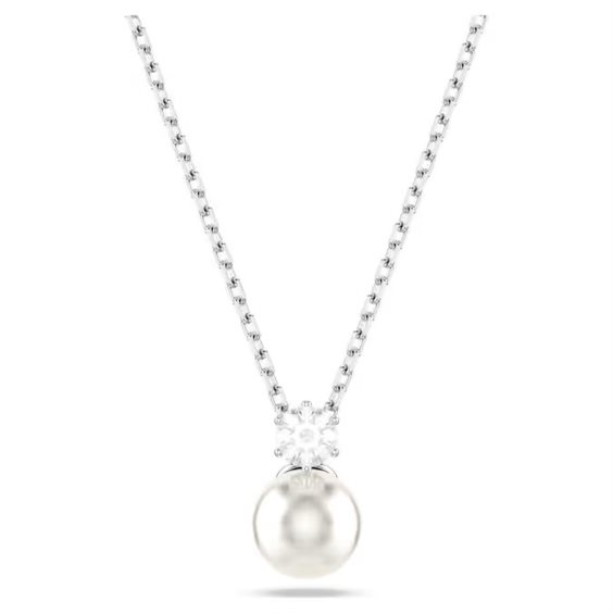 Questo delicato pendente Matrix mette in risalto la bellezza nella semplicità. Sospeso su un’elegante catena, il gioiello placcato rodio presenta un’unica Crystal Pearl Swarovski bianca e una Swarovski Zirconia taglio Round. È la creazione perfetta dal lusso luminoso, da abbinare facilmente ad altre creazioni della famiglia Matrix. Articolo nr.: 5693897 Collezione: Matrix Lunghezza (minima - massima): 38 - 45 cm Dimensione decorazione: 1.3 x 0.8 cm Materiale: Cristalli, Placcatura rodio, Perla di cristallo, Zirconia Colore: Bianco Tipo di fermaglio: Moschettone