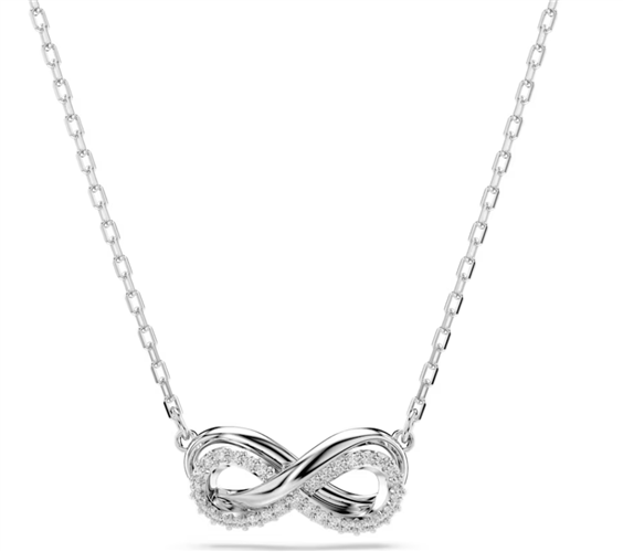 Questo splendente pendente Hyperbola è caratterizzato da un simbolo dell’infinito – un’intramontabile rappresentazione di bellezza che non sfiorirà mai. Il gioiello placcato rodio, con il suo grazioso motivo impreziosito da un pavé di cristalli Cry, si indossa su una delicata catenina. Un singolo Swarovski Zirconia è inserito sul prolungamento per aggiungere al gioiello un tocco di lusso in più. Regala questa creazione a una persona cara o indossala per impreziosire il tuo stile di tutti i giorni. Articolo nr.: 5687265 Collezione: Hyperbola Lunghezza (minima - massima): 38 - 45 cm Dimensione decorazione: 0.8 x 1.7 cm Materiale: Cristalli, Placcatura rodio, Zirconia Colore: Bianco Tipo di fermaglio: Moschettone