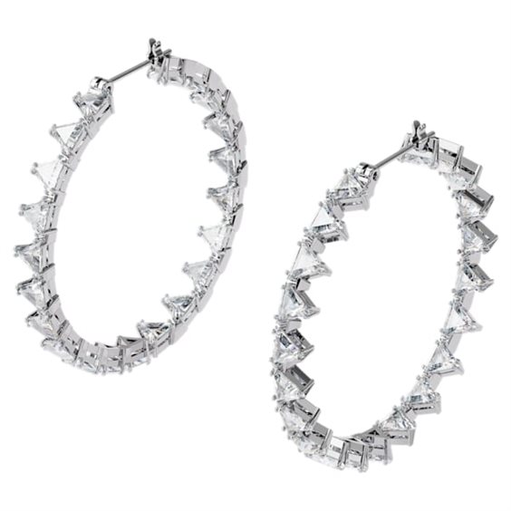 cerchi classici con una variazione affascinante: questo elegante set si presenta come una fila di pietre taglio triangle racchiuse in una raffinata montatura placcata rodio. Aggiungendo solo un pizzico di magia a ogni look, anche l’outfit più semplice si trasforma, quando indosserai questi orecchini assertivi. Questi orecchini sono parte della famiglia Millenia e sono firmati dal Direttore creativo Giovanna Engelbert