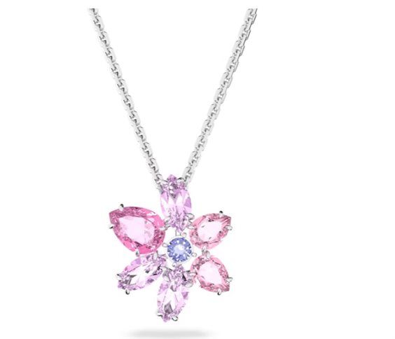 Realizzato con una mix di tagli e tonalità, questo pendente Gema è un pezzo davvero unico perfetto per qualsiasi portagioie. I cristalli magnificamente sfaccettati formano un motivo floreale con un’incastonatura placcata rodio che completa elegantemente la fresca colorazione. Indossa questo pendente per aggiungere prismatici colori al tuo stile e abbinalo ad altri pezzi della famiglia Gema. Articolo nr.: 5662493 Collezione: Gema Colore: Rosa Lunghezza minima: 36 cm Lunghezza massima: 41 cm Larghezza: 1.7 cm Materiale: Cristalli, Placcatura rodio Tipo di fermaglio: Anello a molla