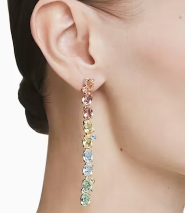 Accendi i colori del tuo stile con questi vivaci orecchini a buco. Ciascuna creazione placcata in tonalità oro presenta un lungo filo di grandi cristalli in molteplici tonalità, accanto a cristalli più piccoli con una gioiosa montatura a griffe a bolle. Giocosi, inaspettati e pronti per affrontare la giornata, questi orecchini a cascata possono essere abbinati a un pendente o a un bracciale Gema per un look ultra-gioioso. Articolo nr.: 5705809 Collezione: Gema Dimensione: 8 x 0.9 cm Materiale: Cristalli, Placcato color oro Colore: Multicolore Peso (singolo oggetto): 6 g