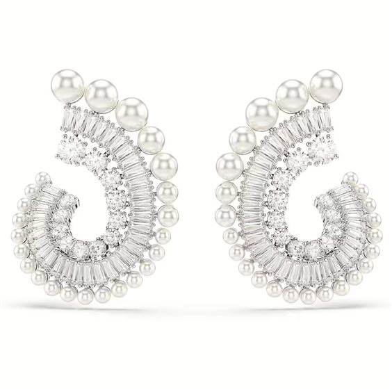 Infusi del savoir-faire di Swarovski, questi straordinari orecchini a buco sono un modo ultramoderno per elevare qualsiasi outfit. Ciascuna creazione placcata rodio presenta una spirale aperta di Swarovski Zirconia taglio Round e Baguette in una gradazione di dimensioni. Sulla sezione esterna, il design è completato da una gradazione di Crystal Pearls Swarovski, che conferiscono un tocco lussuoso e accattivante. Un paio di orecchini luminosi e splendidi, facilmente abbinabili ad altre creazioni della stessa famiglia creativa. Articolo nr.: 5720869 Collezione: Ariana Grande x Swarovski Dimensione: 4.2 x 3.2 cm Materiale: Cristalli, Placcatura rodio, Perla di cristallo, Zirconia Colore: Bianco Peso (singolo oggetto): 9.9 g